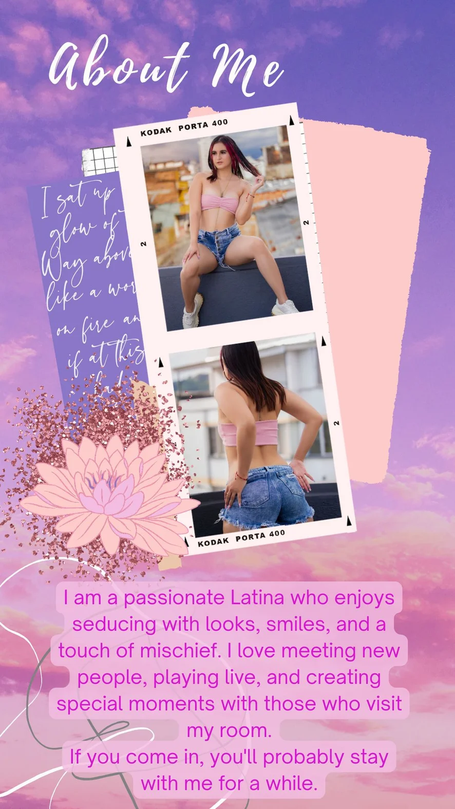 Sweet Latina with a very naughty side. I love to flirt, play, and create fun shows for my fans.